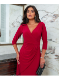 Este vestido vermelho é o epítome da elegância. Com uma modelagem transpassada que valoriza a silhueta, ele conta com mangas 3/4 e um tecido suave que proporciona um caimento incrível. Ideal para eventos especiais ou ambientes formais, combina perfeitamente com acessórios minimalistas.